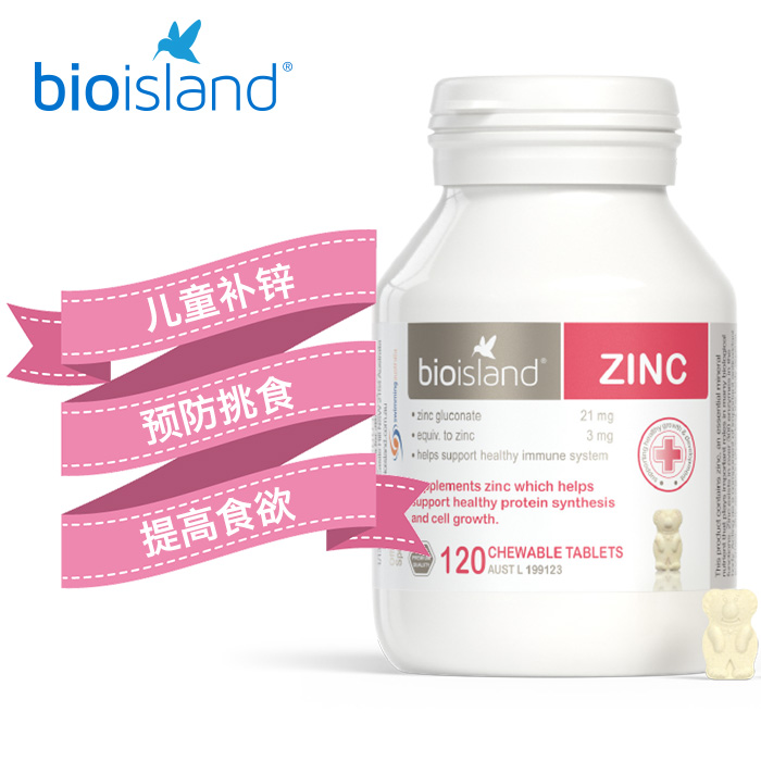 Bio island 婴幼儿宝宝补锌小熊咀嚼片 120粒