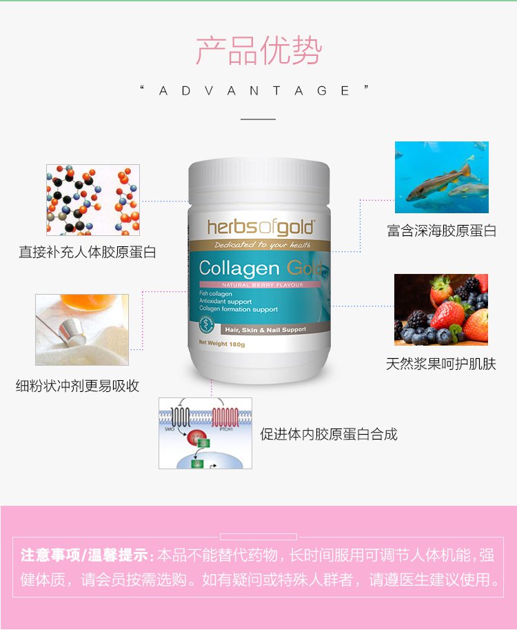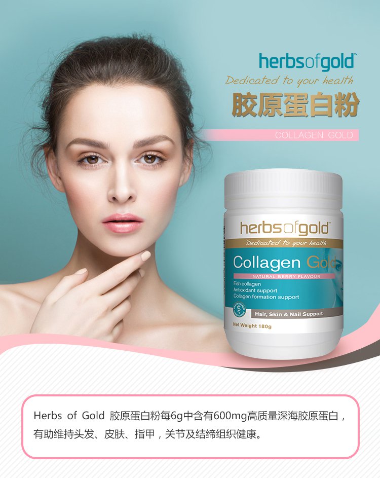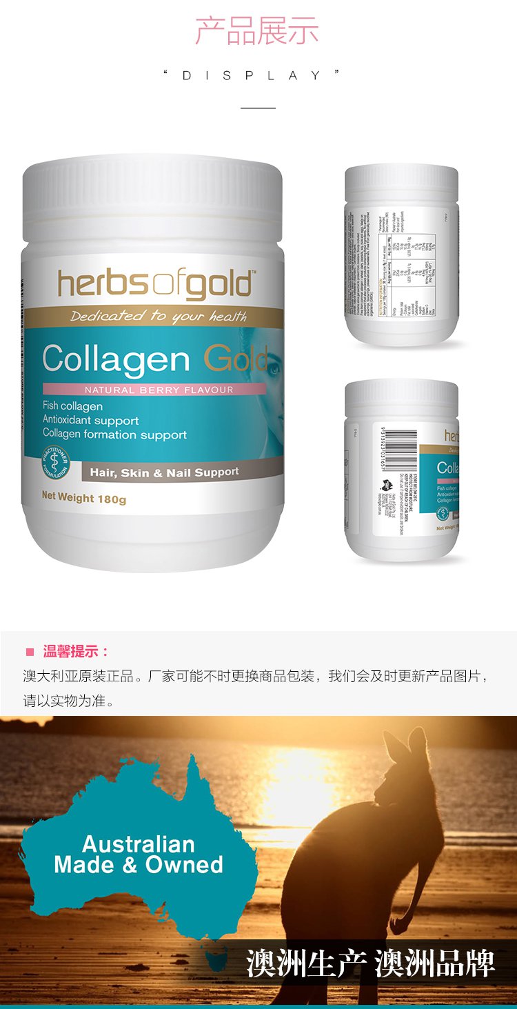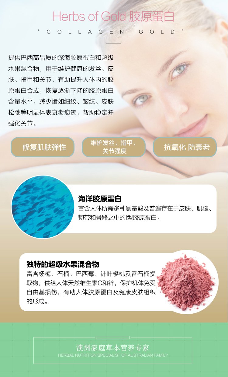 Herbs of Gold 和丽康天然骨胶原蛋白粉 莓子味美肌护肤 180克