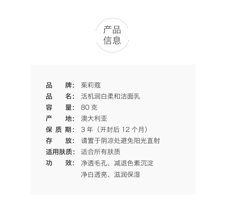 Jurlique 茱莉蔻 活机润白柔和洁面乳80g 毛孔洗面奶 温和清洁肌肤