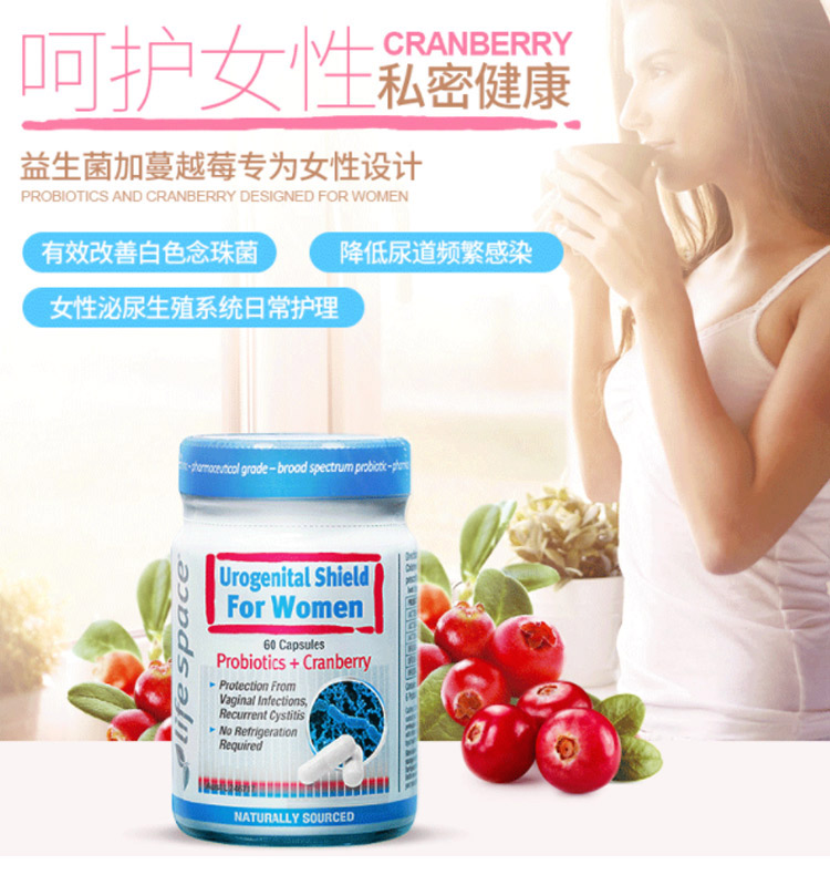 Life Space 女性泌尿生殖益生菌胶囊 肠胃肠道调理 60粒