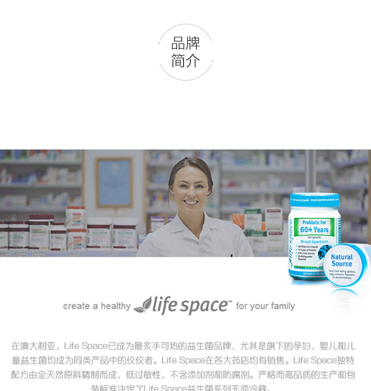 Life Space 60岁以上老年人益生菌 调节肠胃免疫力 60粒