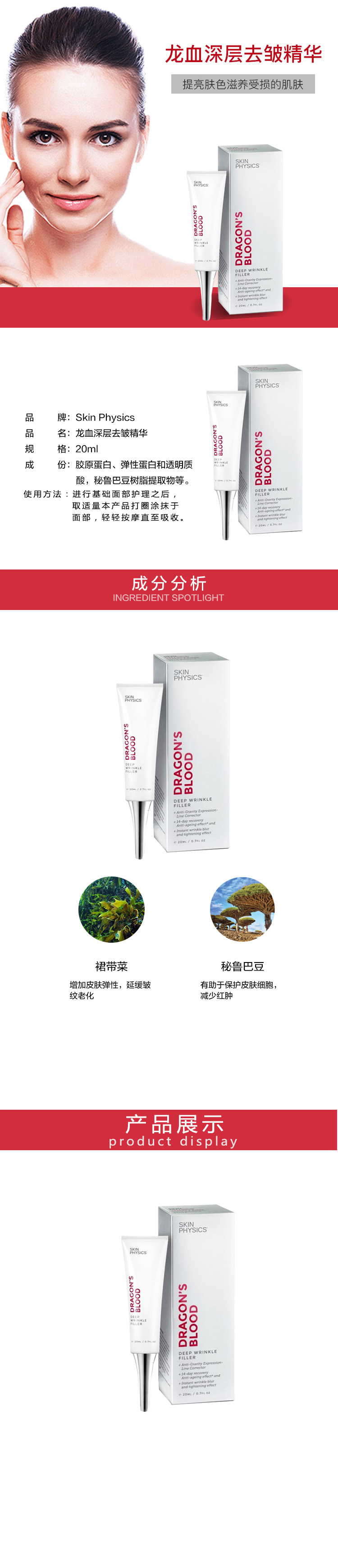 Skin Physics 龙血深层去皱抬头纹法令纹提拉面部紧致精华20ml
