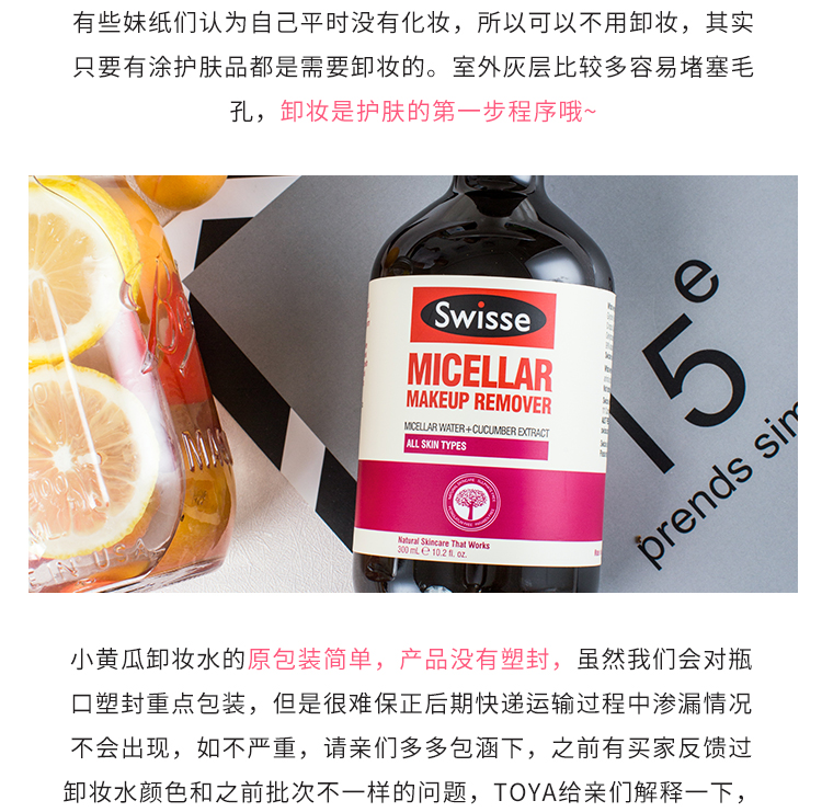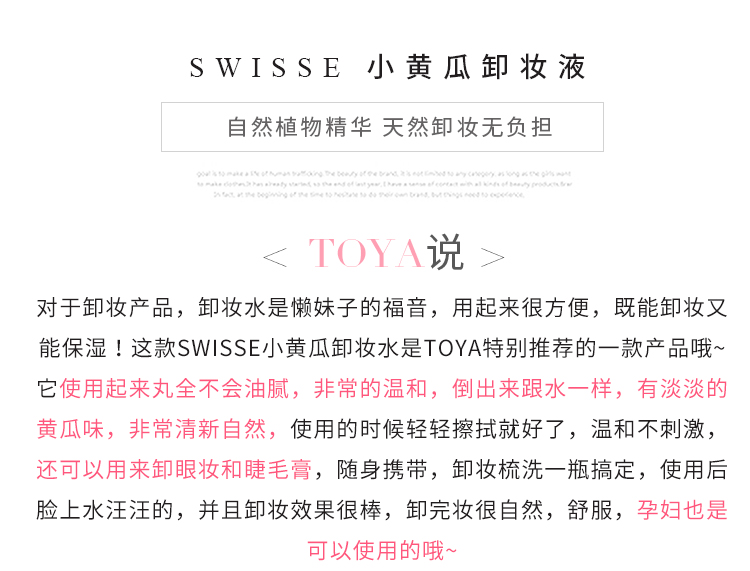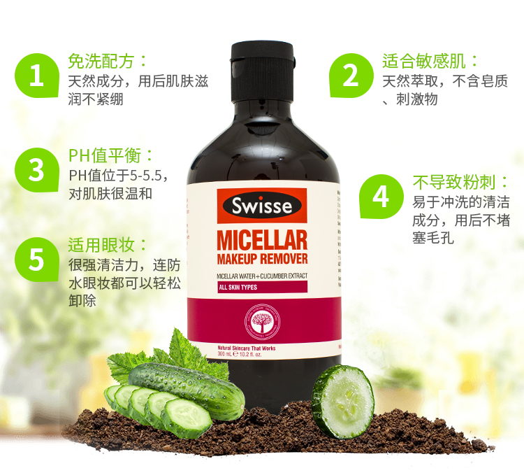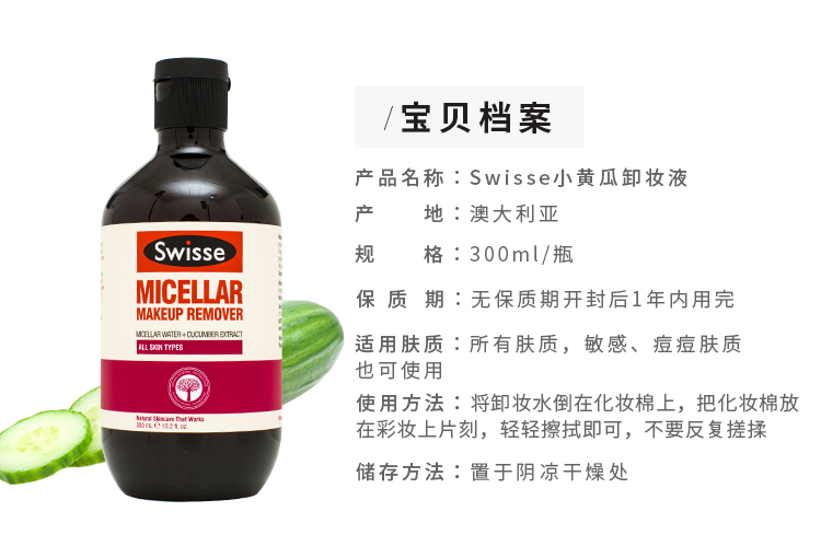 Swisse 温泉水萃取小黄瓜卸妆液舒爽肌肤孕妇可用 300ml